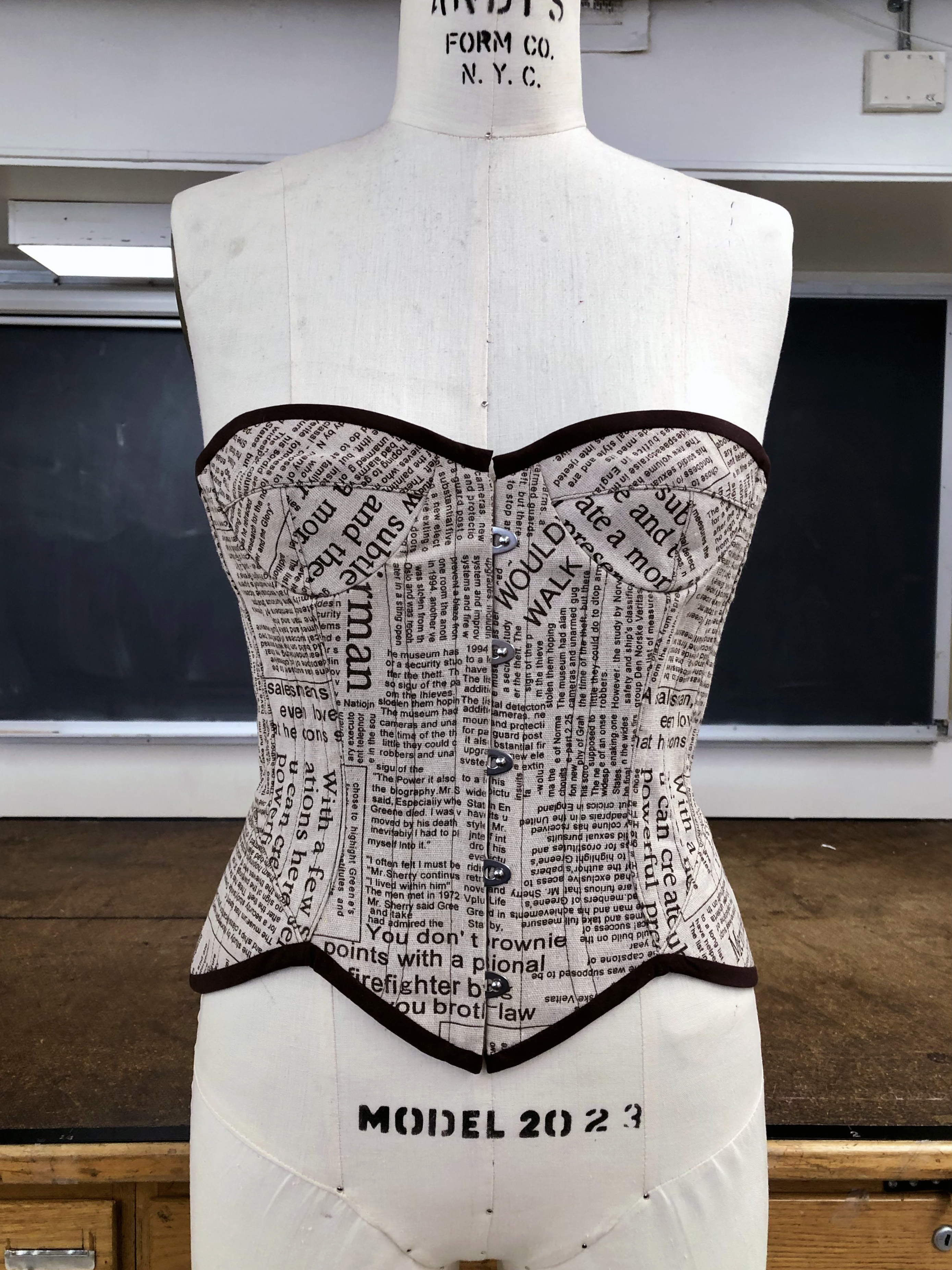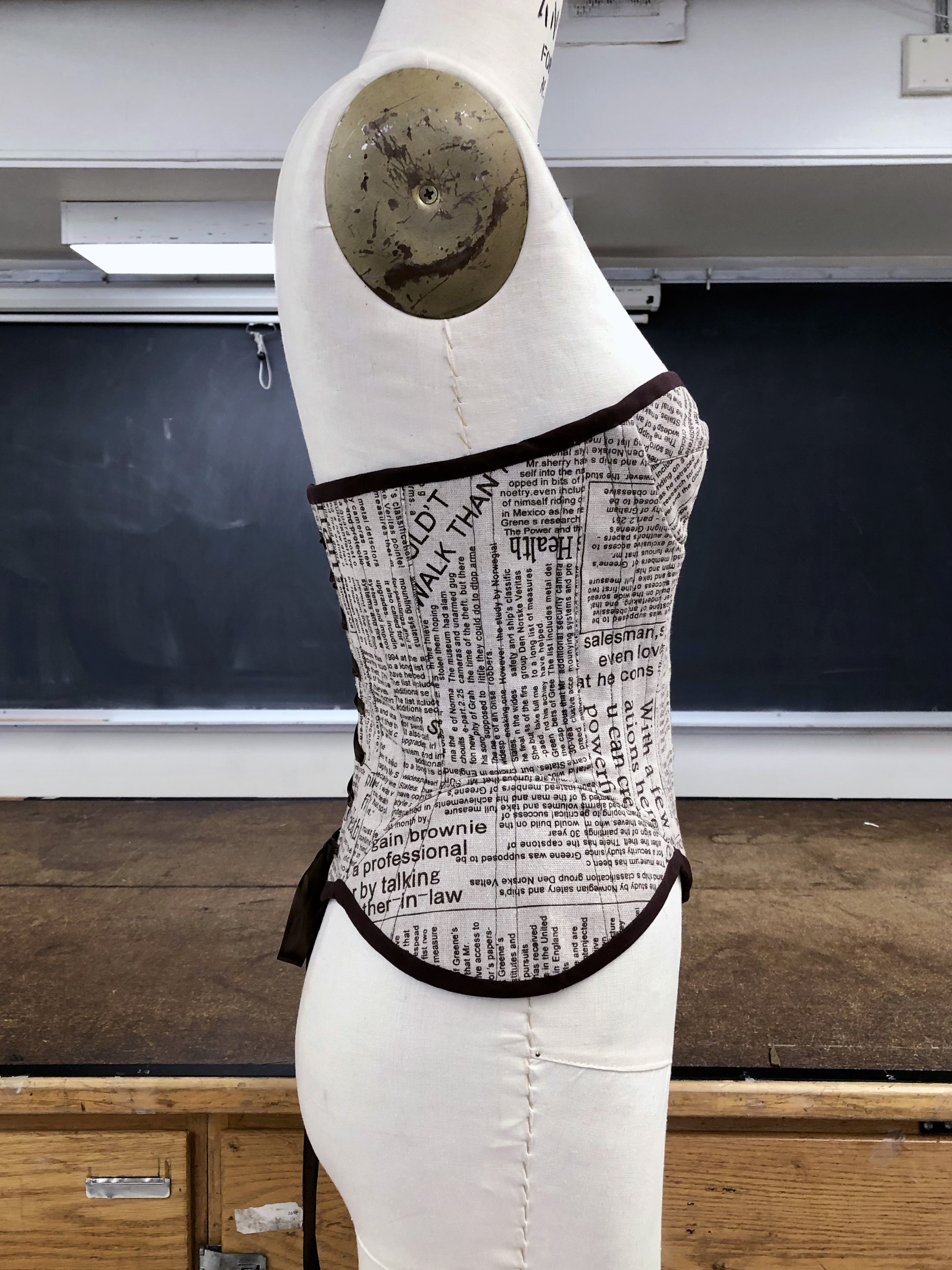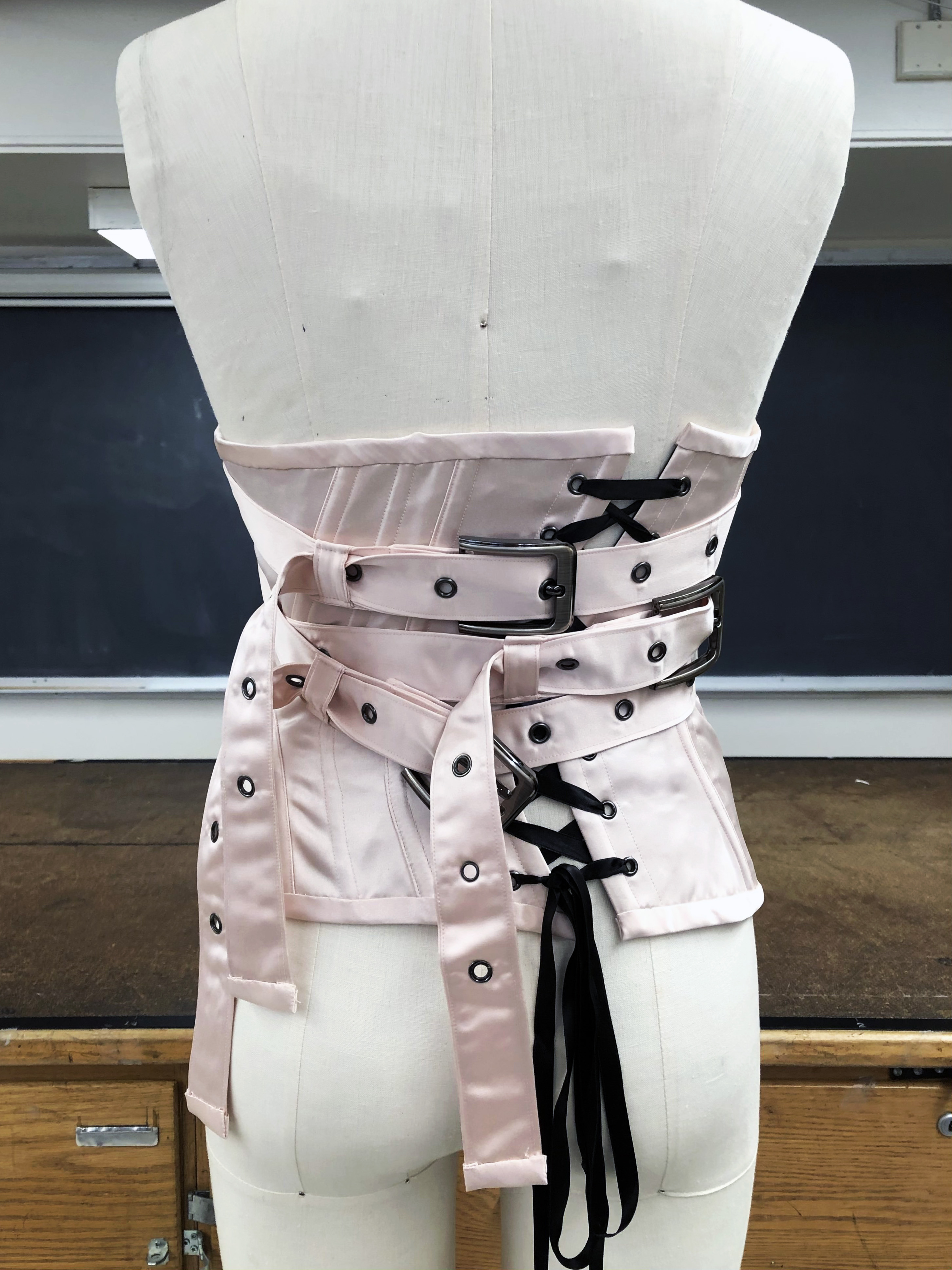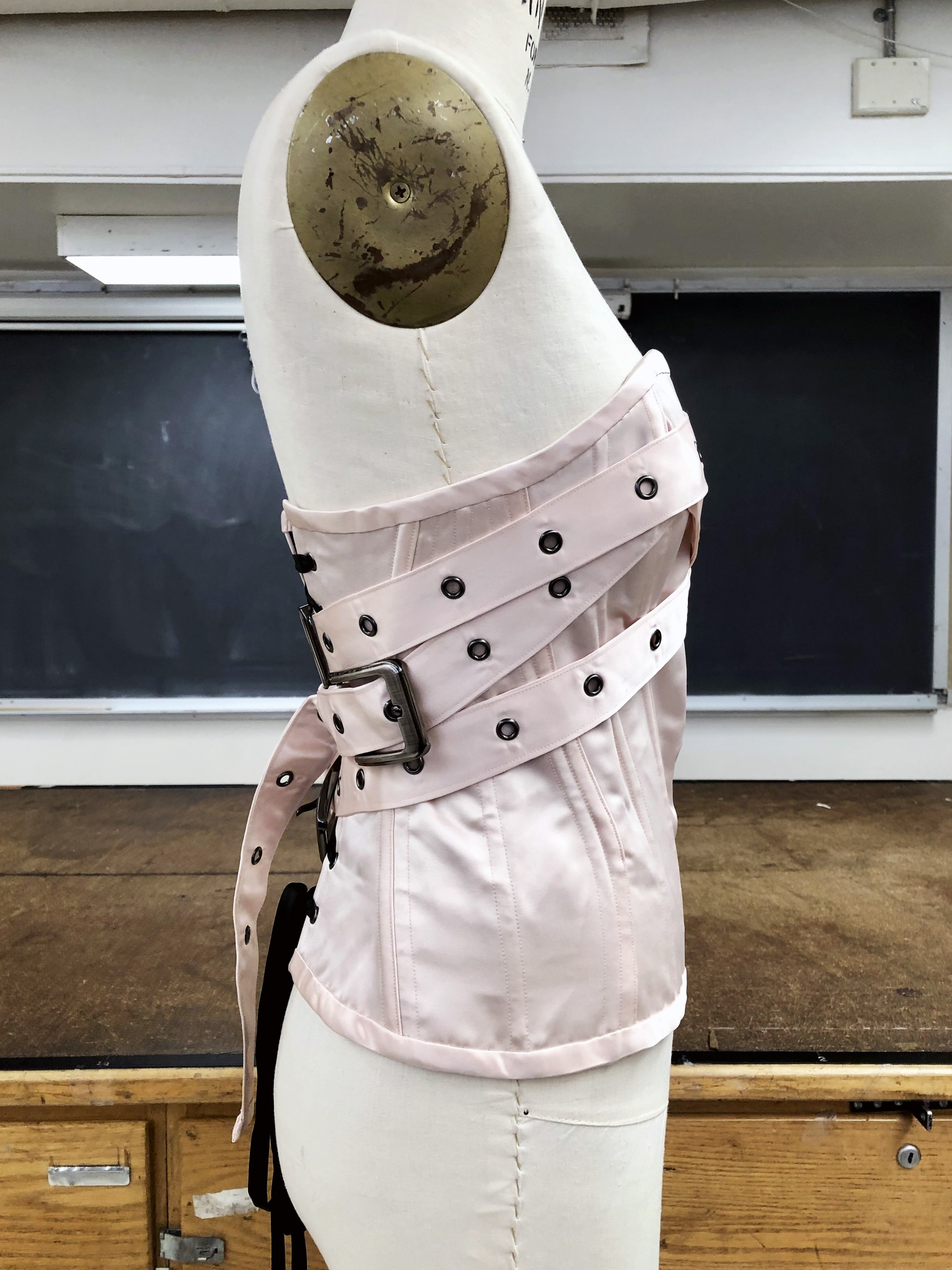 Strait jacket inspired corset, made from heavy-weight satin.
