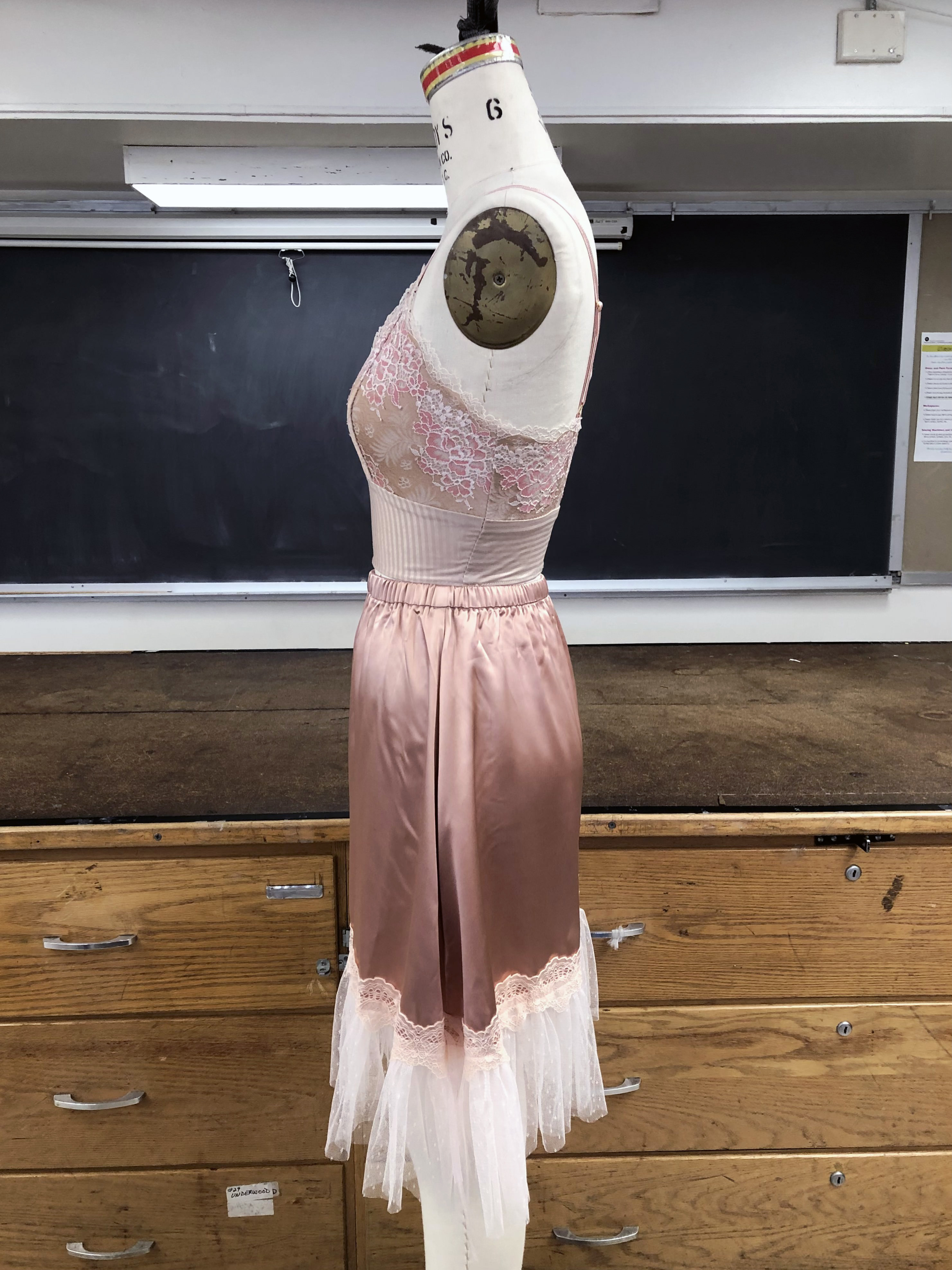 Control slip dress, made with spandex, power mesh, and galloon lace.